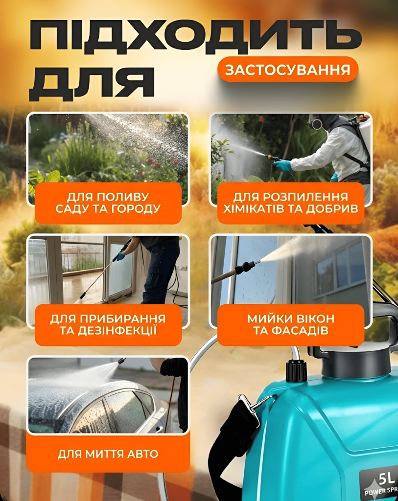 - -Універсальне застосування для поливу, внесення добрив та обробки від шкідників