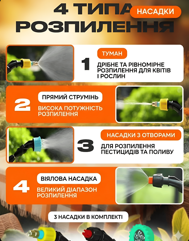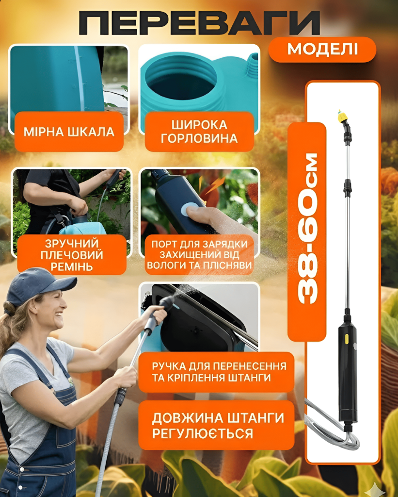 - -Тип: Акумуляторний садовий обприскувач